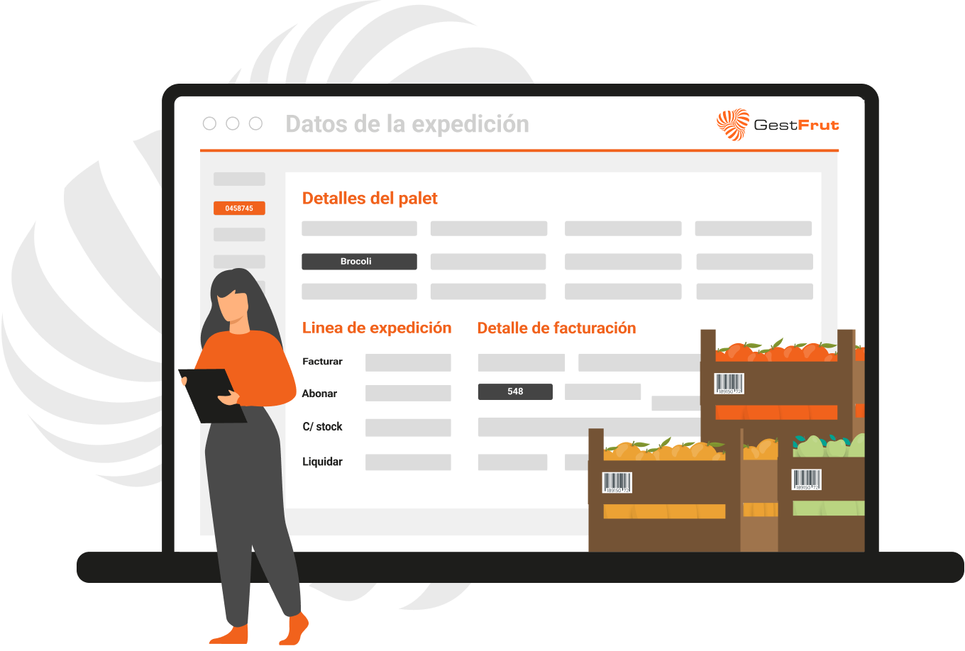 - Gestión de la recepción de la mercancía, paletizado y liquidación a agricultores.