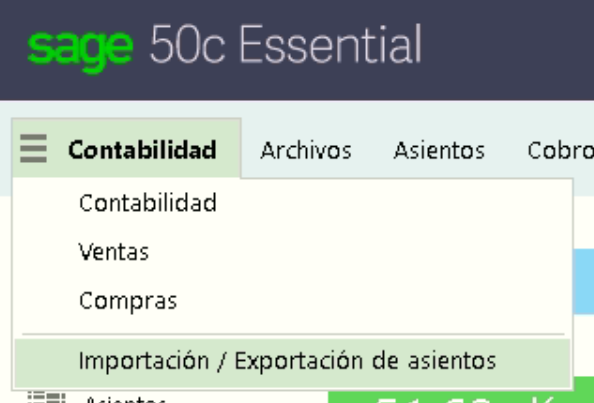 Use la opción Asientos/Utilidades/Importar-Exportar en su programa