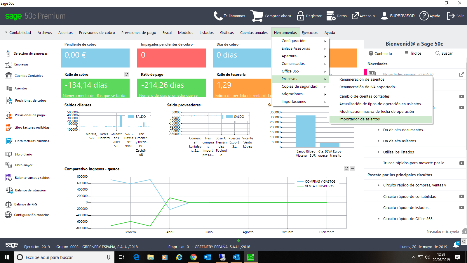 Las cuentas implicadas se configuran en Administracion/Auxiliares/Empresas/Cuentas .