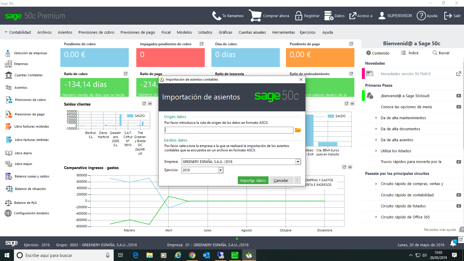 Cuando se intenta importar los datos desde la contabilidad hay que tener en cuenta si se encuentra instalada en el servidor (se debe teclear la ruta completa) o en el equipo local (se debe teclear la ruta local).