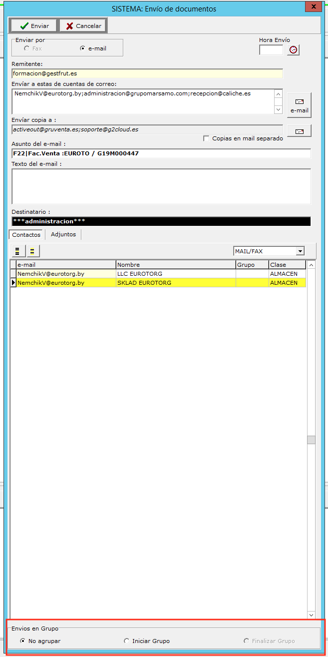 - 1.- En el primer documento que se envía, en la pantalla de envío y en la parte inferior use la opción INICIAR GRUPO.