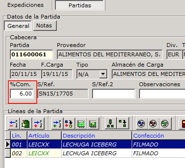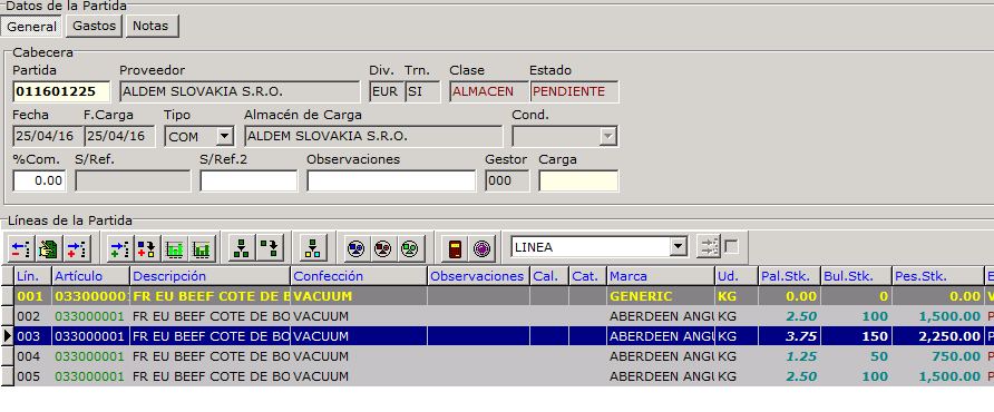 - 2.- Crear una partida de clase ALMACEN (desde cargas o directamente) cuyas líneas se hayan cargado desde el catálogo.