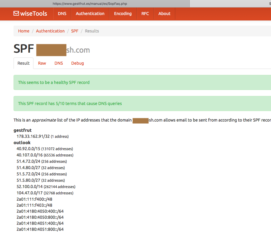 Los registros SPF son públicos y se puede comprobar si un cierto dominio tiene el registro SPF usando la direccion: https://tools.wordtothewise.com/spf/check